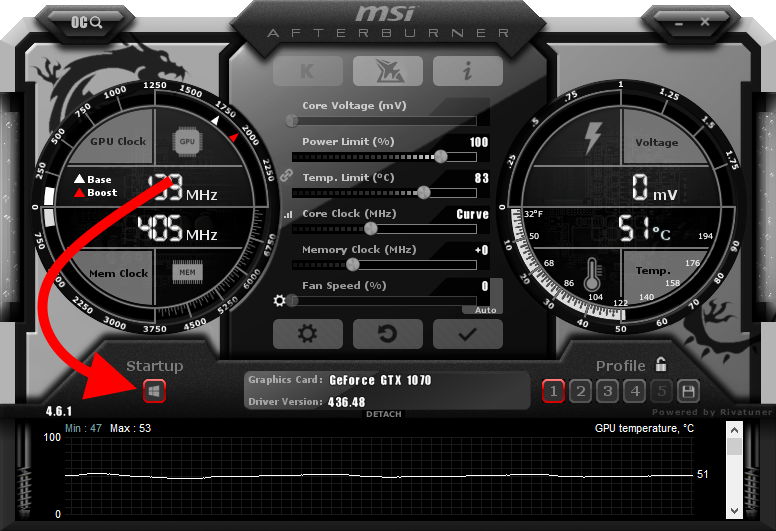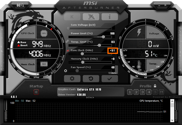 Our target frequency (1860mhz) is greater than 1809mhz by 51mhz, so we switch back to the starting window and increase the core clock by 51mhz.