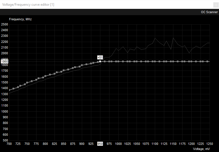 - For all voltage points greater than 950mv, drag them to or below 1860mhz