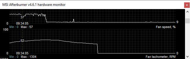 Still not convinced? One thing that I’ve not mentioned is the noise reduction undervolting brings. Below is a graph from Afterburner that shows % fan speed during a timespy run to be between 50-60%.