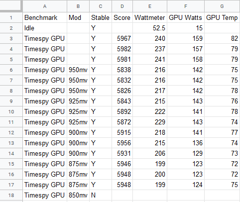 If the undervolt is unstable then Timespy won’t finish and will display an error. That’s when you know you’ve undervolted too far and to dial it back one step. It is rare that undervolts would cause significant instability like blue screens, system freezes, or screen artifacts.
