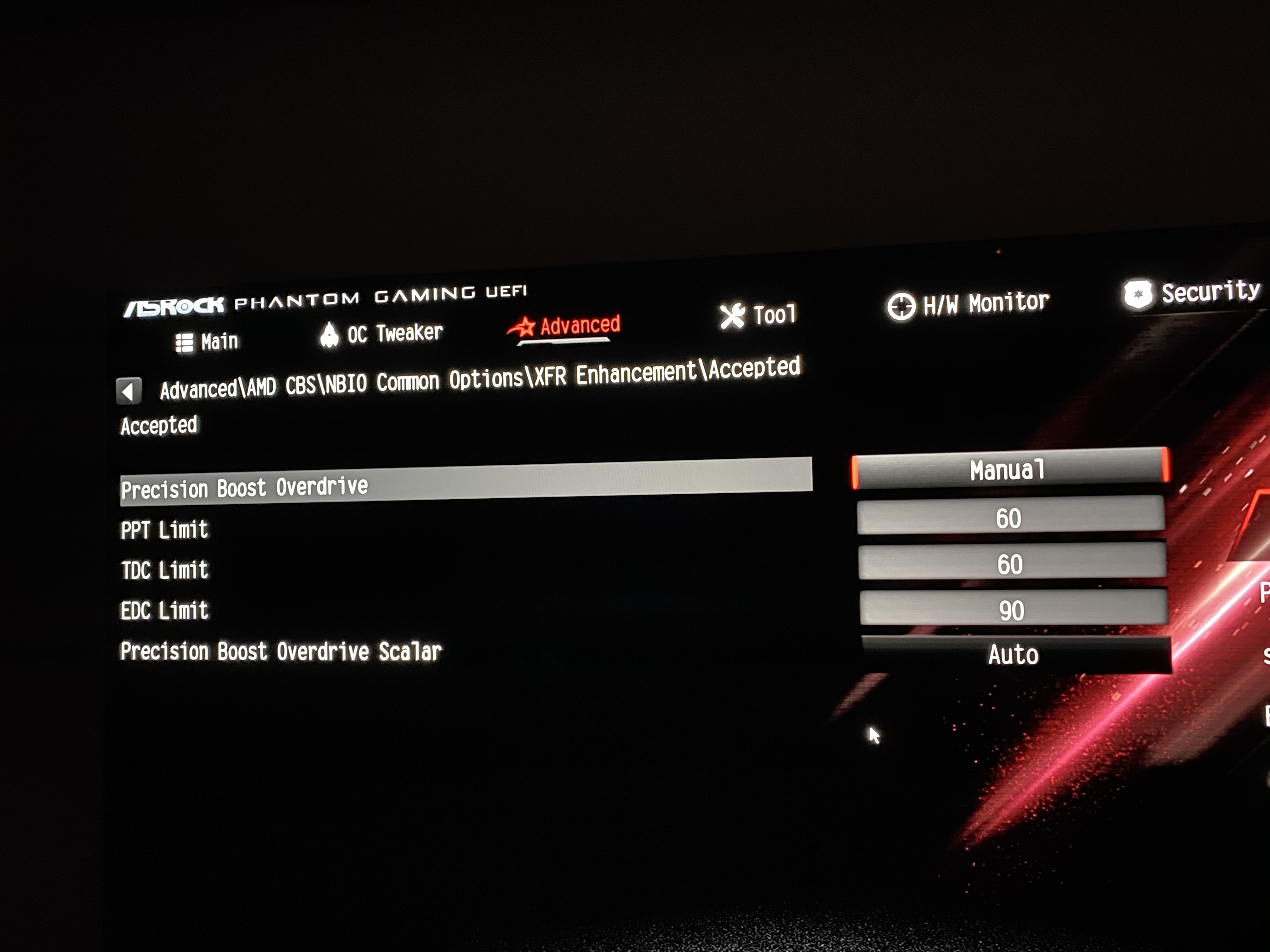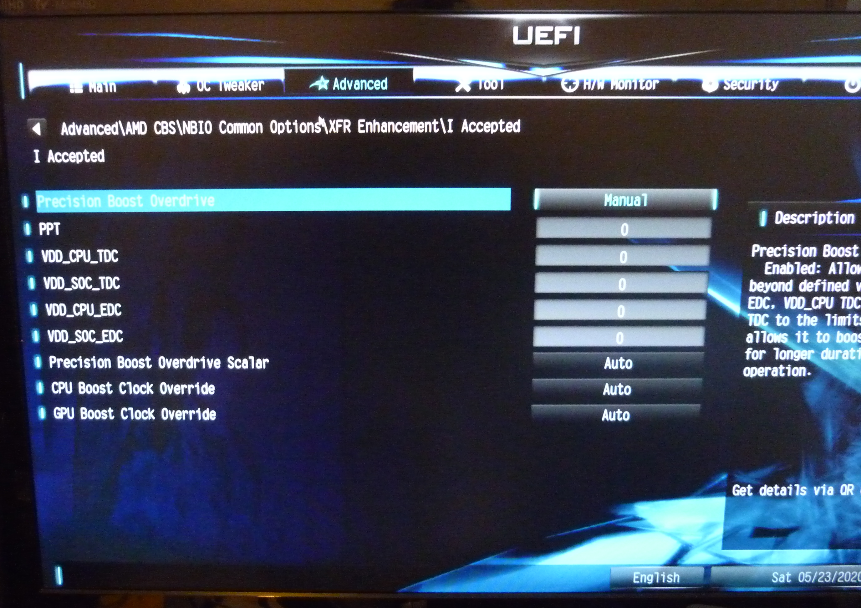 Due note that just changing these two settings may not be enough. Your system may detect the new voltage / frequency, but see that it has plenty of power left in it’s budget and turbo beyond that disregarding your intentions. The solution is to disable precision boost. For asrock motherboards this is called Core Performance Boost (CPB)
