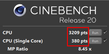 - No difference in either Cinbench score