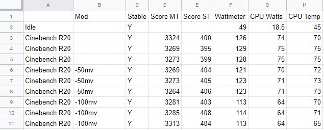 Thus I ran the -50mv offset three times in cinebench, and then moved onto a -100mv offset, which proved stable as well.