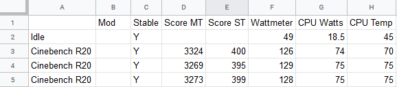 - Google sheets: A spreadsheet for tracking power usage, benchmarks, any modifications, etc
