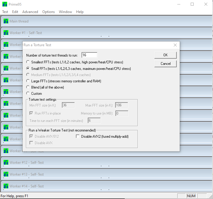 Running Prime95 tortue test