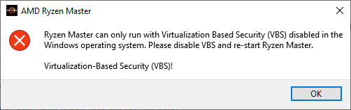 Error when trying to use Ryzen Master with Virtualization