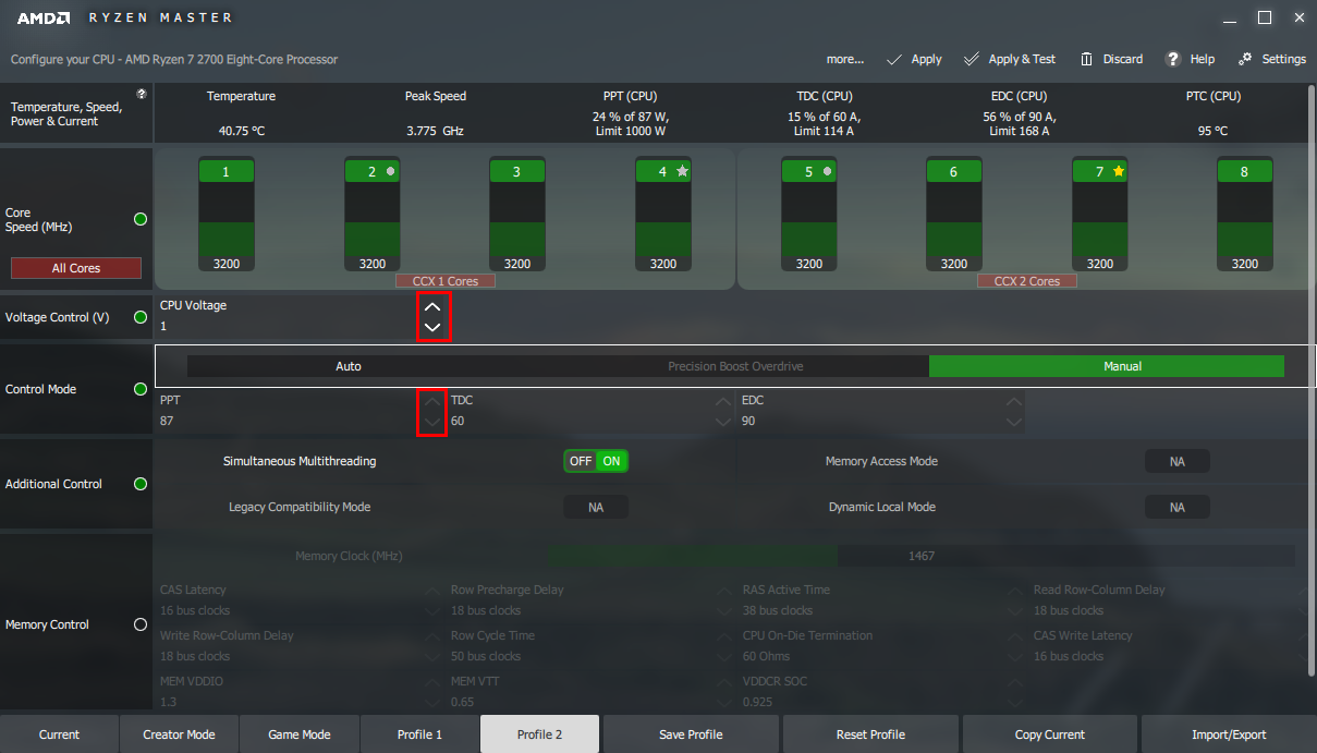Ryzen Master with PPT adjustments disabled